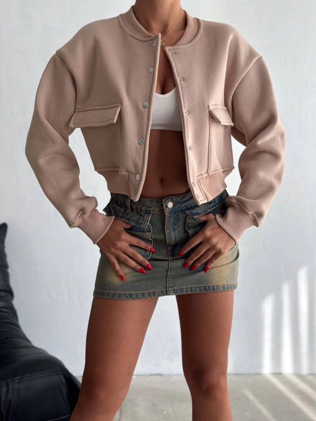 3 iplik şardonlu Önü çıtçıtlı cepli ceket bej f2226, kadın giyim kategorisinde şıklık ve rahatlık arayanlar için ideal bir seçenektir.