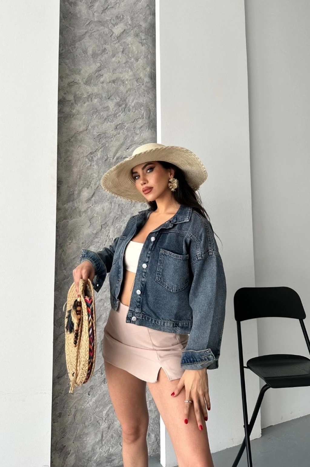 Yüksek kaliteli denim kumaştan üretilmiş olan D2000 Crop Kot Ceket, konforu ve şıklığı bir arada sunar.