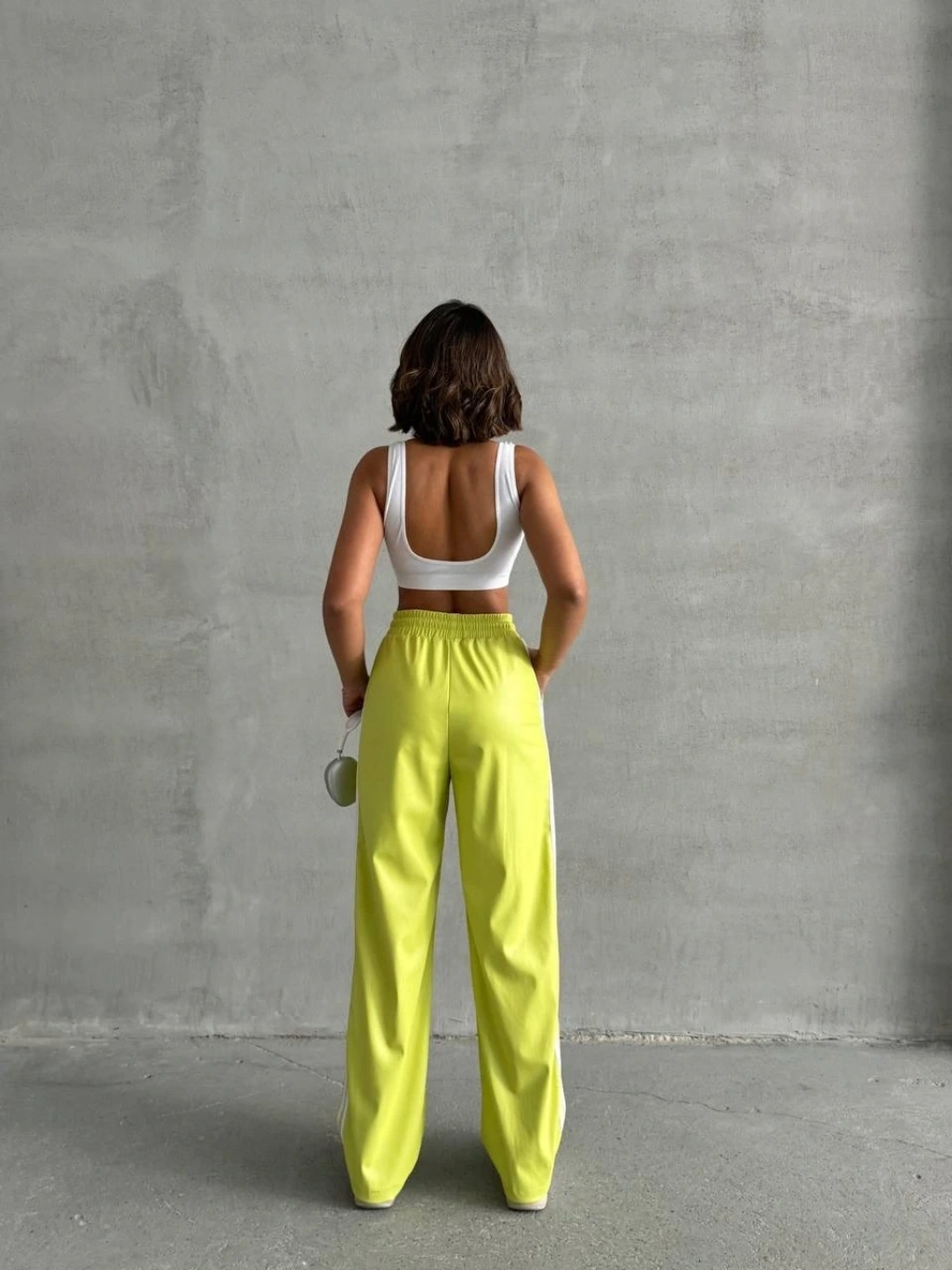 Şıklığı ve rahatlığı bir arada sunan yeşil şeritli deri pantolon h26430, gardırobunuzun favori parçası olmaya aday.