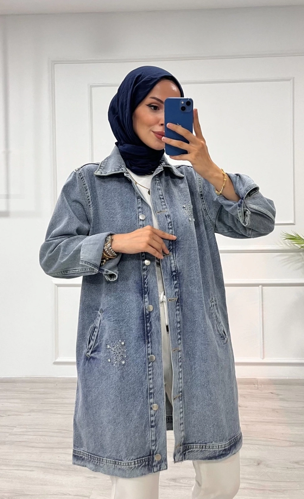 • Taşlı tunik ceket kar yıkamalı mavi d2516