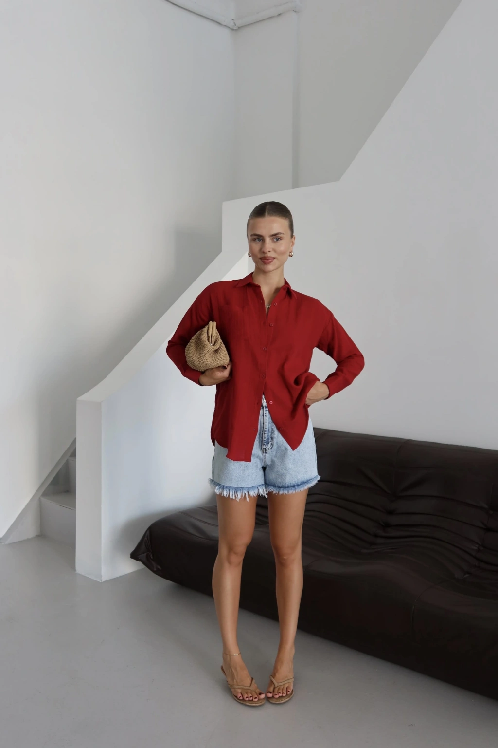 Tek cepli müslin gömlek bordo pt